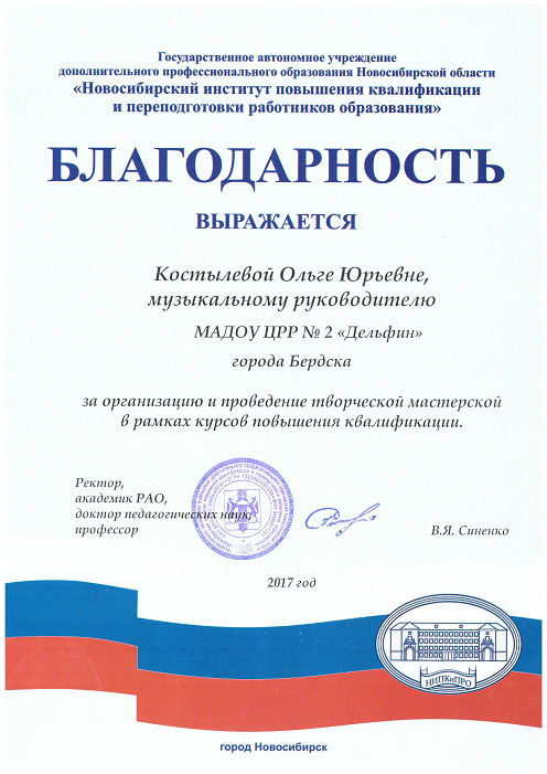 За организацию и проведение творческой мастерской в рамках курсов повышения квалификации. |
