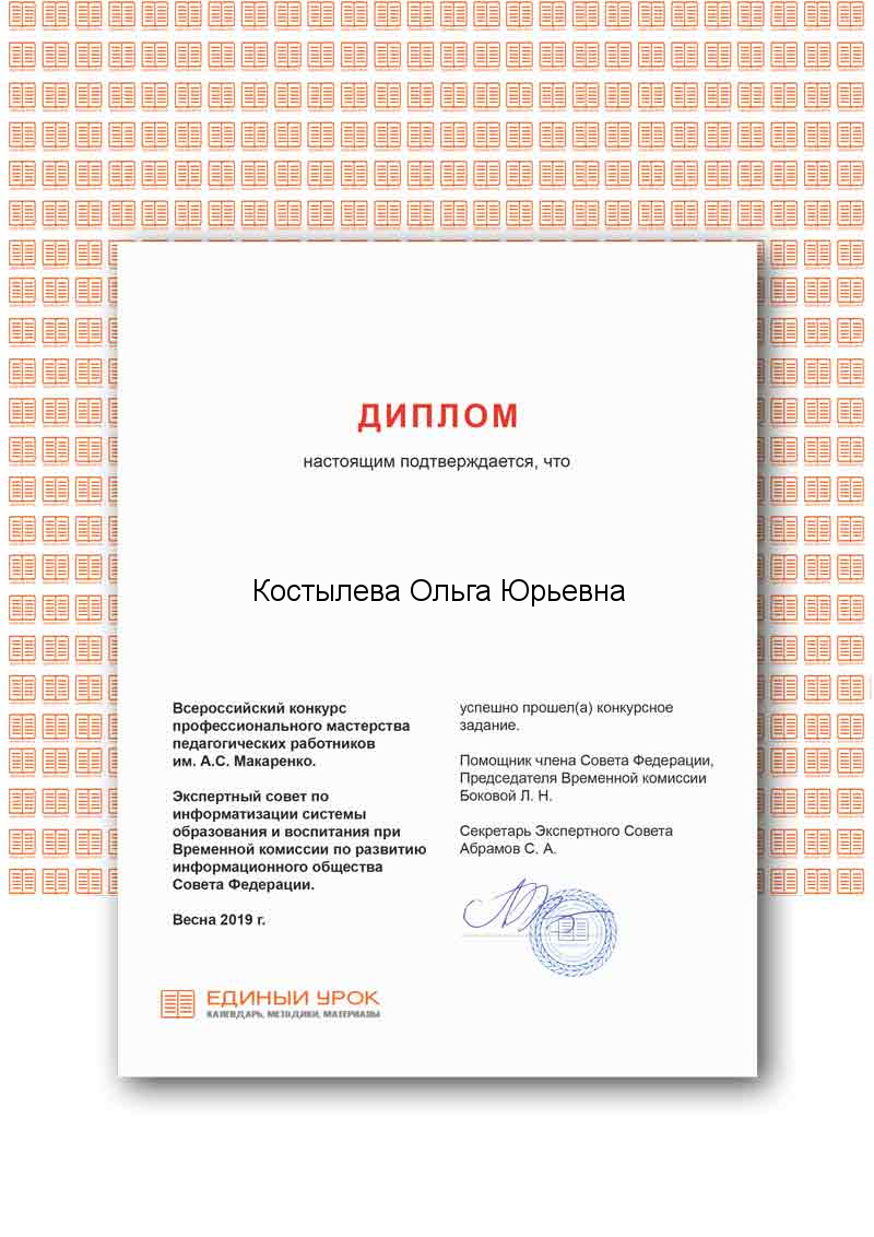 Диплом 1 степени Всероссийского конкурса "Мелодинка. Олимпиады и публикации"