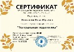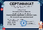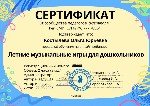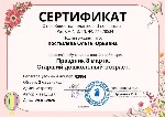 Сертификат о публикации на страницах педагогического сборника "Мелодинка. Олимпиады и публикации"