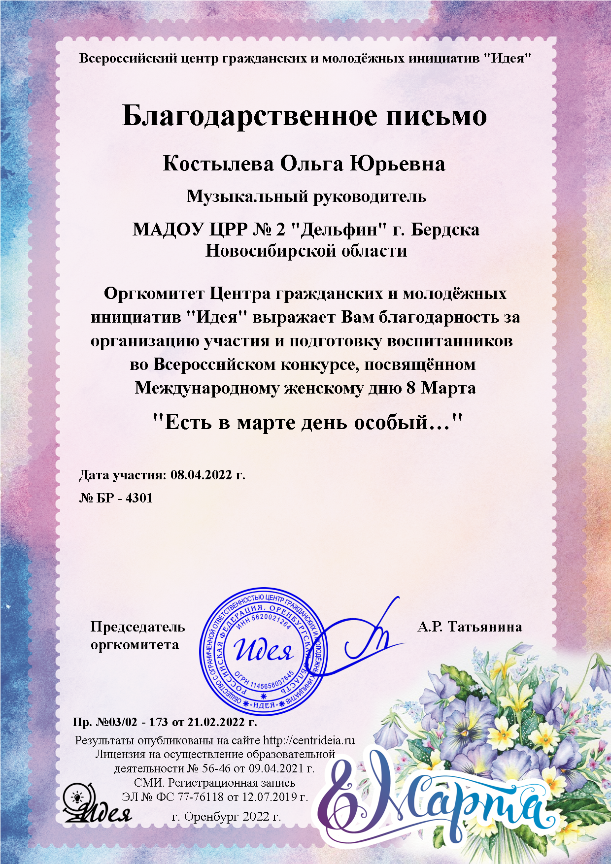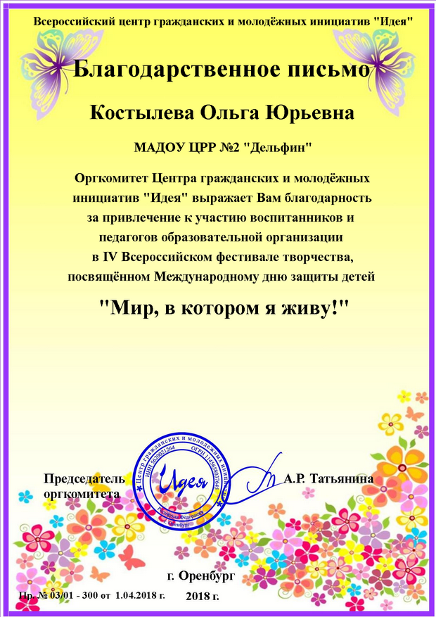 Всероссийского центра гражданских и молодёжных инициатив "Идея",