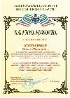 За победу во Всероссийском конкурсе исполнителей литературных и музыкальных произведений, посвящённого Дню Матери "В каждой строчке слово МАМА!" (песня "Тихо-тихо", муз. А Комарова, сл. В. Орлова)