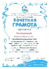 За победу в Муниципальном вокальном фестивале-конкурсе детского творчества "Песня маминой улыбки" в номинации "Дуэт" за песню "Тихо-тихо...", муз. А. Комарова, сл. В. Орлова
