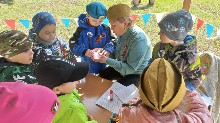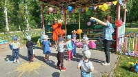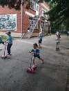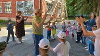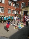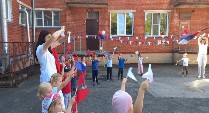 Воспитанники старших и подготовительных к школе групп продолжили праздник на физкультурной площадке, где их ждали интеллектуальные и спортивные задания. Завершилось мероприятие исполнением песни "Что что зовём мы Родиной" и рисунками на асфальте.