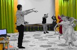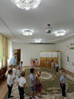 накакануне праздничных выходных, в музыкальном зале собрались воспитанники старших и подготовительных к школе групп, чтобы ещё раз поговорить о празднике День народного единства. После исполнения гимна Российской Федерации ребята ещё раз прочли стихи о Родине, которые накануне звучали на конкурсе чтецов, исполнили патриотические песни, познакомились с играми народов России: "Чижик", "Юрта", "Тюбетейка". Но больше всего докшольников вдохновил просмотр танца северных народов "Навстречу солнцу".