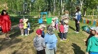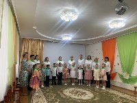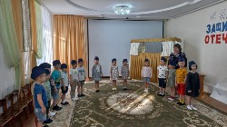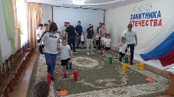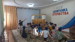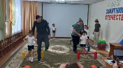 средних и старших групп педагоги, кроме военных эстафет, приготовили ещё и кукольный спектакль про то, как Зайка и Ёжик в армию пошли. Дошкольники помогли персонажам освоить азы военной науки: маршировку, попадание в цель, преодоление полосы препятствий. Все праздничные мероприятия сопровождались исполнением патриотических песен, а участники «Богатырских забав» ещё исполнили гимн при поднятии российского флага перед началом соревнований.