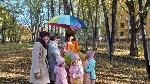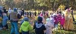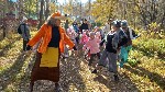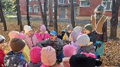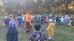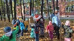 Воспитанники старших групп по обычаю совершили экскурсию по окрестностям осеннего города. В конце пути их в этот раз встречали Осень, Домовёнок и Лисичка.