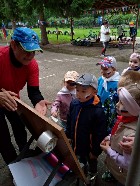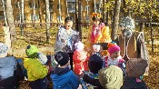На школьном стадионе детей встретили спортсмены, которые проверили ловкость ребят и рассказали о пользе спорта. На территории школы № 12 детям повстречались художник, рисовавший картину, и музыкант, игравший на флейте. Здесь ребят тоже ждали задания: загадки о музыкальных инструментах, вопросы о жанрах живописи. Воспитанники старших групп достойно ответили на вопросы и исполнили песню. Закончилось небольшое путешествие в липовой аллее детского сада, где их ждала красавица Осень.