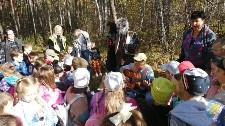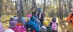 Апофеоз осенних путешествий пришёлся на самый теплый день сентября. 25 числа воспитанники подготовительных к школе групп (5, 6, 7) отправились в лес спасать заблудившуюся Машу.