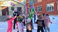 У воспитанников средних, старших и подготовительных к школе групп празднование Масленицы прошло на улице. Несмотря на морозный денёк, ребята с удовольствием играли в русские народные игры, плясали и, конечно, катались на лошадке.