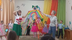 А 24 апреля тему Весны-красны продолжили воспитанники старших групп «Непоседы» и «Бабочки». Вместе с педагогами и красавицей Весной они отправились в увлекательное путешествие по весенним праздникам. Вспомнили