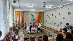 Почти все группы готовят и представляют зрителям театральные постановки. В этом году старшая группа "Бабочки" приготовила спектакль о дружбе по мотивам сказки В.Сутеева "Яблоко". Ребята группы
