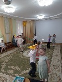 К самым старшим ребятам пришли в гости весёлые клоуны Бим и Бом. Они поиграли с дошкольниками в интеллектуальные и подвижные игры, потанцевали и показали