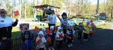 4 мая в честь празднования 78-й годовщины Победы в детском саду для воспитанников старших и подготовительных к школе групп была организована и проведена спортивно-патриотическая игра «Зарничка». На мероприятие в качестве непосредственных участников были приглашены родители