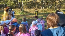 Ну а "подготовишки" отправились в поход в самый нстоящий осенний лес! Там их тоже ждали разные персонажи, игры, стихи и, обязательно, песни под гитару!